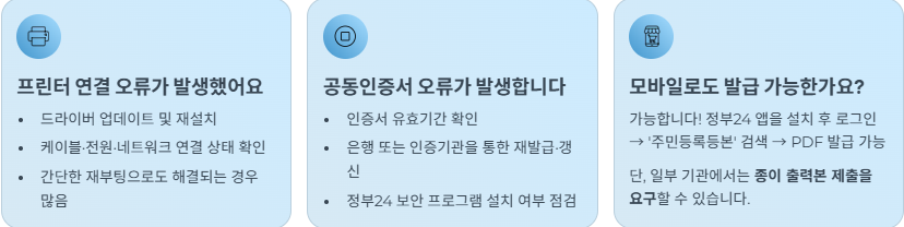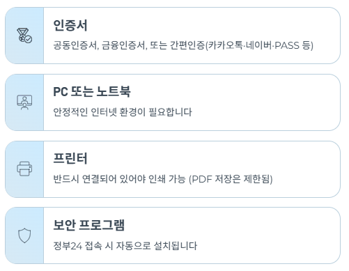 ⚠️ 주의: 주민등록등본은 보안상 PDF 저장 불가이며, 인쇄본만 법적 효력을 가집니다.