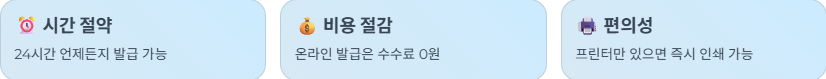 - ✅ 시간 절약: 24시간 언제든지 발급 가능