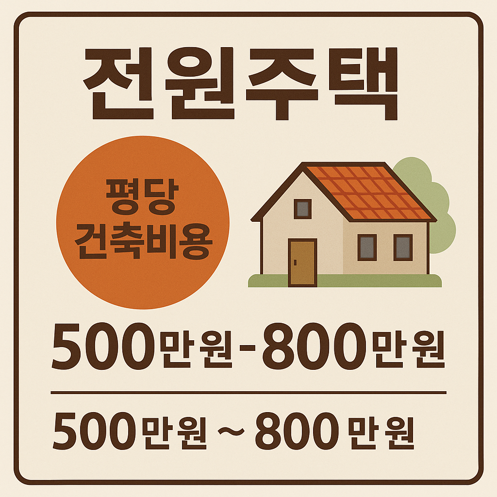 전원주택 건축비용은 2025년 기준으로 평당 약 500만 원에서 700만 원 사이가 일반적입니다. 이는 기본 구조, 외장 마감재, 시공 지역, 설계 복잡도 등에 따라 달라질 수 있습니다.