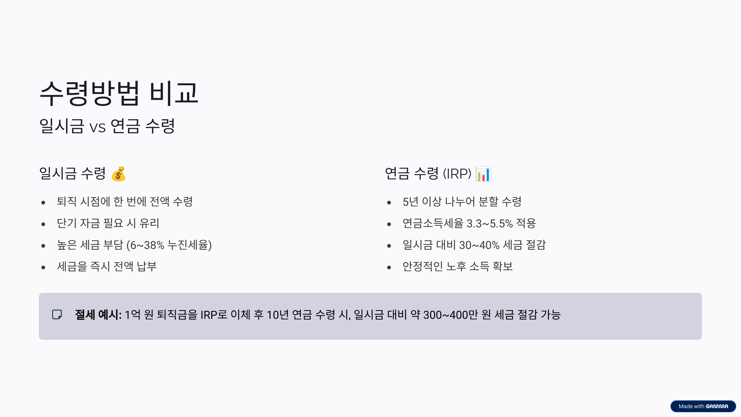 3. 퇴직연금 수령방법 종류: 일시금 vs 연금 수령